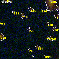 Object #736 x,y = (2384, 2236) RA, Dec = (00:32:11.736, 18:07:36.84) = (8.04890, 18.12690) BPZ = 0.597 [0.271--4.547] type = 8.00 (SB1_B10) chisq2 = 0.42 ODDS = 0.12 z_cluster = 0.396
