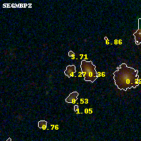 Object #76 x,y = (1791, 3443) RA, Dec = (00:32:14.232, 18:08:49.56) = (8.05930, 18.14710) BPZ = 4.268 [0.690--4.379] type = 8.10 (SB1_B10 - SB2_B10) chisq2 = 0.25 ODDS = 0.88 z_cluster = 0.396