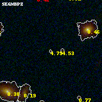 Object #774 x,y = (1875, 2131) RA, Dec = (00:32:13.896, 18:07:30.72) = (8.05790, 18.12520) BPZ = 4.795 [0.476--5.548] type = 9.40 (SB2_B10 - SB3_B10) chisq2 = 0.43 ODDS = 0.29 z_cluster = 0.396
