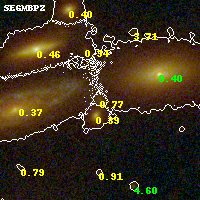 Object #787 x,y = (2591, 2080) RA, Dec = (00:32:10.872, 18:07:27.48) = (8.04530, 18.12430) BPZ = 0.768 [0.355--0.869] type = 7.10 (Scd_B10 - SB1_B10) chisq2 = 0.08 ODDS = 0.68 z_cluster = 0.396