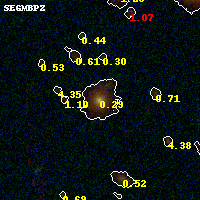 Object #800 x,y = (1650, 2064) RA, Dec = (00:32:14.832, 18:07:26.76) = (8.06180, 18.12410) BPZ = 0.293 [0.224--0.329] type = 3.90 (Ell4_A_0 - Ell5_A_0) chisq2 = 0.17 ODDS = 0.93 z_cluster = 0.396