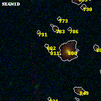 Object #811 x,y = (1615, 2064) RA, Dec = (00:32:14.976, 18:07:26.76) = (8.06240, 18.12410) BPZ = 1.101 [0.198--3.347] type = 9.50 (SB3_B10 - SB2_B10) chisq2 = 0.18 ODDS = 0.13 z_cluster = 0.396