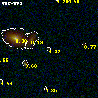 Object #825 x,y = (1859, 2029) RA, Dec = (00:32:13.968, 18:07:24.60) = (8.05820, 18.12350) BPZ = 4.273 [0.414--4.728] type = 8.80 (SB2_B10 - SB1_B10) chisq2 = 0.14 ODDS = 0.42 z_cluster = 0.396