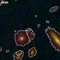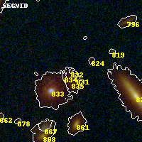 Object #832 x,y = (3334, 2014) RA, Dec = (00:32:07.752, 18:07:23.88) = (8.03230, 18.12330) BPZ = 1.209 [0.275--2.995] type = 8.20 (SB1_B10 - SB2_B10) chisq2 = 0.14 ODDS = 0.16 z_cluster = 0.396