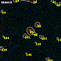 Object #85 x,y = (2698, 3413) RA, Dec = (00:32:10.416, 18:08:47.76) = (8.04340, 18.14660) BPZ = 0.245 [0.171--0.284] type = 4.00 (Ell4_A_0) chisq2 = 0.12 ODDS = 0.91 z_cluster = 0.396