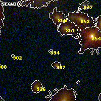 Object #894 x,y = (2162, 1902) RA, Dec = (00:32:12.672, 18:07:17.04) = (8.05280, 18.12140) BPZ = 1.138 [0.568--2.561] type = 10.70 (SB11_A_0_l - SB3_B10) chisq2 = 1.35 ODDS = 0.18 z_cluster = 0.396