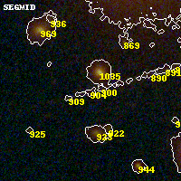 Object #904 x,y = (2826, 1882) RA, Dec = (00:32:09.888, 18:07:15.60) = (8.04120, 18.12100) BPZ = 1.238 [0.710--2.084] type = 9.20 (SB2_B10 - SB3_B10) chisq2 = 0.17 ODDS = 0.38 z_cluster = 0.396