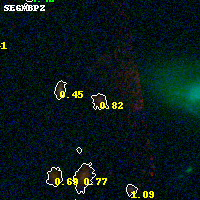Object #929 x,y = (3655, 1832) RA, Dec = (00:32:06.408, 18:07:12.72) = (8.02670, 18.12020) BPZ = 0.816 [0.249--1.040] type = 7.10 (Scd_B10 - SB1_B10) chisq2 = 0.21 ODDS = 0.31 z_cluster = 0.396