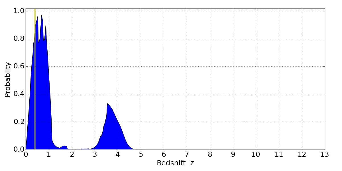 Best viewed in a wide browser window (1200 pixels or more). Download SED & P(z) plots to view larger versions.