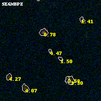 Object #937 x,y = (3476, 1829) RA, Dec = (00:32:07.152, 18:07:12.72) = (8.02980, 18.12020) BPZ = 4.469 [0.304--5.186] type = 9.80 (SB3_B10 - SB2_B10) chisq2 = 0.39 ODDS = 0.28 z_cluster = 0.396