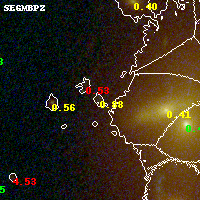 Object #951 x,y = (2414, 1780) RA, Dec = (00:32:11.616, 18:07:09.48) = (8.04840, 18.11930) BPZ = 0.877 [0.184--1.061] type = 9.40 (SB2_B10 - SB3_B10) chisq2 = 0.16 ODDS = 0.25 z_cluster = 0.396