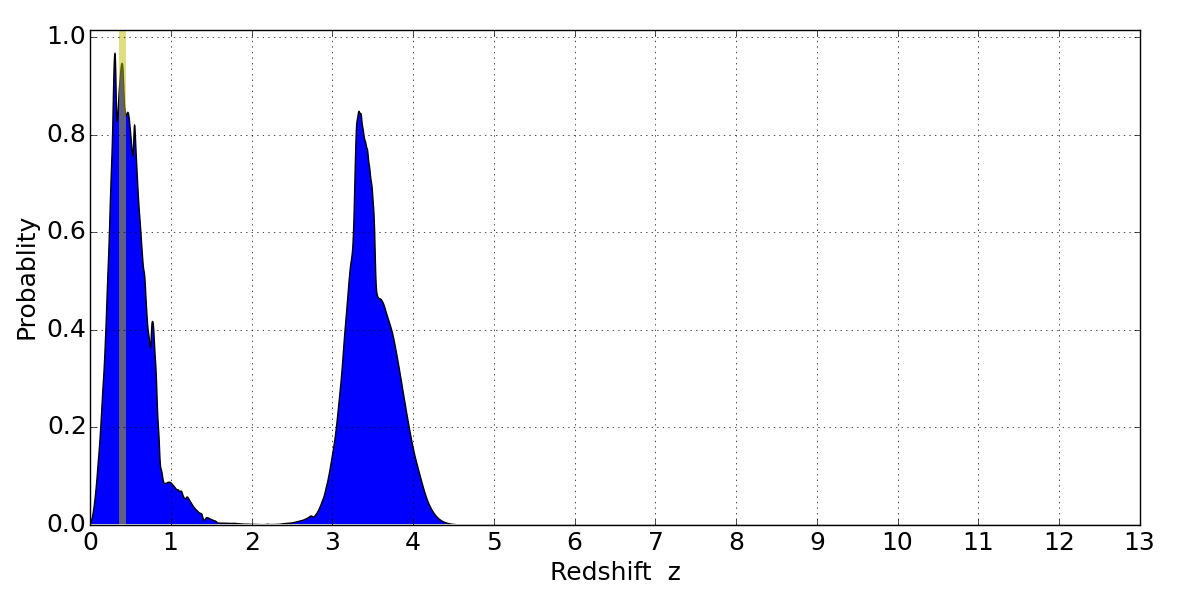Best viewed in a wide browser window (1200 pixels or more). Download SED & P(z) plots to view larger versions.