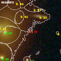 Object #961 x,y = (2583, 1761) RA, Dec = (00:32:10.896, 18:07:08.40) = (8.04540, 18.11900) BPZ = 1.472 [1.101--11.220] type = 6.00 (Sbc_B10) chisq2 = 1.38 ODDS = 0.17 z_cluster = 0.396