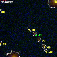 Object #995 x,y = (1952, 1693) RA, Dec = (00:32:13.560, 18:07:04.44) = (8.05650, 18.11790) BPZ = 1.384 [0.467--3.076] type = 9.70 (SB3_B10 - SB2_B10) chisq2 = 0.26 ODDS = 0.21 z_cluster = 0.396