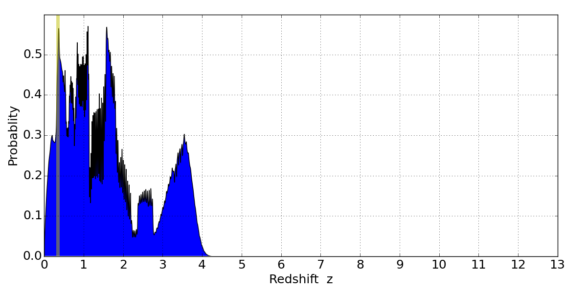 Best viewed in a wide browser window (1200 pixels or more). Download SED & P(z) plots to view larger versions.
