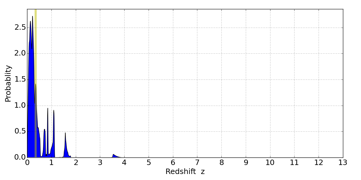 Best viewed in a wide browser window (1200 pixels or more). Download SED & P(z) plots to view larger versions.