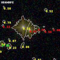 Object #110 x,y = (2739, 3556) RA, Dec = (01:43:16.680, 44:34:41.16) = (25.81950, 44.57810) BPZ = 0.606 [0.534--0.676] type = 3.50 (Ell4_A_0 - Ell5_A_0) chisq2 = 2.45 ODDS = 0.93 z_cluster = 0.341