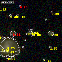 Object #1102 x,y = (3285, 2227) RA, Dec = (01:43:13.608, 44:33:21.60) = (25.80670, 44.55600) BPZ = 0.373 [0.156--3.733] type = 9.90 (SB3_B10 - SB2_B10) chisq2 = 0.18 ODDS = 0.09 z_cluster = 0.341