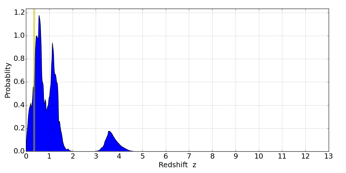 Best viewed in a wide browser window (1200 pixels or more). Download SED & P(z) plots to view larger versions.