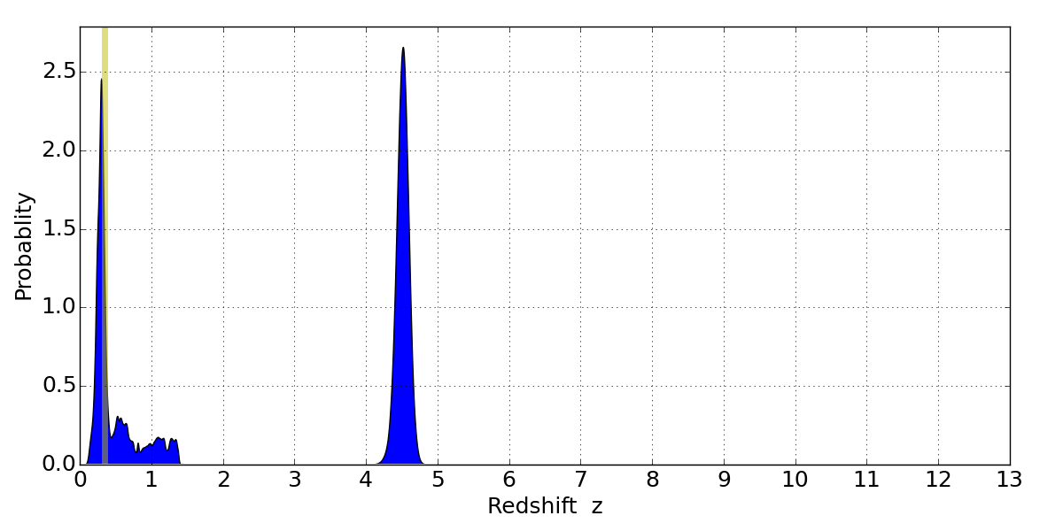 Best viewed in a wide browser window (1200 pixels or more). Download SED & P(z) plots to view larger versions.