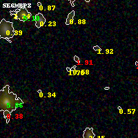 Object #150 x,y = (2712, 3430) RA, Dec = (01:43:16.824, 44:34:33.60) = (25.82010, 44.57600) BPZ = 1.758 [0.172--3.674] type = 10.90 (SB11_A_0_l - SB3_B10) chisq2 = 0.06 ODDS = 0.10 z_cluster = 0.341