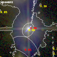 Object #181 x,y = (2245, 3364) RA, Dec = (01:43:19.464, 44:34:29.64) = (25.83110, 44.57490) BPZ = 0.063 [0.019--0.436] type = 7.20 (Scd_B10 - SB1_B10) chisq2 = 0.00 ODDS = 0.44 z_cluster = 0.341