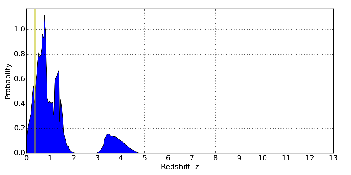 Best viewed in a wide browser window (1200 pixels or more). Download SED & P(z) plots to view larger versions.