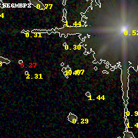 Object #320 x,y = (2254, 3103) RA, Dec = (01:43:19.416, 44:34:13.80) = (25.83090, 44.57050) BPZ = 0.670 [0.186--3.884] type = 10.20 (SB3_B10 - SB11_A_0_l) chisq2 = 0.05 ODDS = 0.06 z_cluster = 0.341