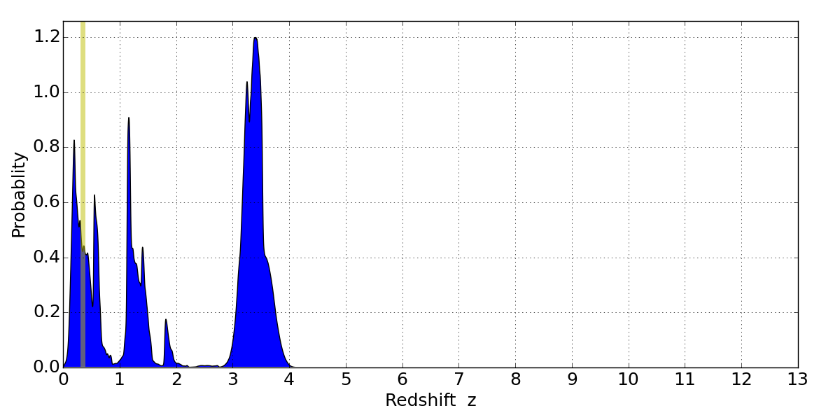 Best viewed in a wide browser window (1200 pixels or more). Download SED & P(z) plots to view larger versions.