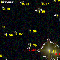 Object #71 x,y = (2653, 3632) RA, Dec = (01:43:17.160, 44:34:45.84) = (25.82150, 44.57940) BPZ = 0.577 [0.168--4.805] type = 9.10 (SB2_B10 - SB3_B10) chisq2 = 0.43 ODDS = 0.06 z_cluster = 0.341