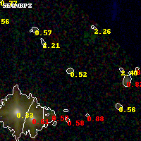 Object #74 x,y = (2793, 3623) RA, Dec = (01:43:16.392, 44:34:45.12) = (25.81830, 44.57920) BPZ = 0.523 [0.127--4.260] type = 9.60 (SB3_B10 - SB2_B10) chisq2 = 0.48 ODDS = 0.11 z_cluster = 0.341