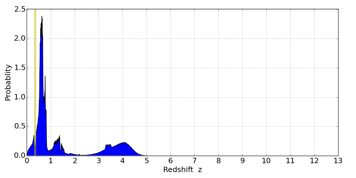 Best viewed in a wide browser window (1200 pixels or more). Download SED & P(z) plots to view larger versions.