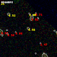 Object #82 x,y = (2862, 3573) RA, Dec = (01:43:15.984, 44:34:42.24) = (25.81660, 44.57840) BPZ = 0.559 [0.144--4.045] type = 9.00 (SB2_B10) chisq2 = 0.15 ODDS = 0.07 z_cluster = 0.341
