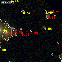 Object #87 x,y = (2817, 3560) RA, Dec = (01:43:16.248, 44:34:41.52) = (25.81770, 44.57820) BPZ = 0.875 [0.148--5.344] type = 8.50 (SB2_B10 - SB1_B10) chisq2 = 1.44 ODDS = 0.07 z_cluster = 0.341
