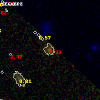 Object #94 x,y = (2982, 3530) RA, Dec = (01:43:15.312, 44:34:39.72) = (25.81380, 44.57770) BPZ = 0.393 [0.046--0.874] type = 1.00 (Ell7_A_0) chisq2 = 990.00 ODDS = 0.19 z_cluster = 0.341