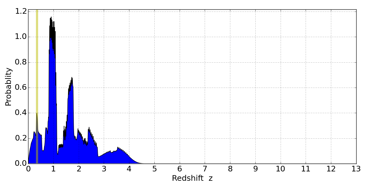 Best viewed in a wide browser window (1200 pixels or more). Download SED & P(z) plots to view larger versions.