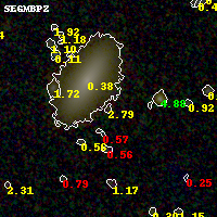 Object #964 x,y = (3179, 2372) RA, Dec = (01:43:14.208, 44:33:30.24) = (25.80920, 44.55840) BPZ = 2.788 [0.243--3.894] type = 9.40 (SB2_B10 - SB3_B10) chisq2 = 0.51 ODDS = 0.13 z_cluster = 0.341
