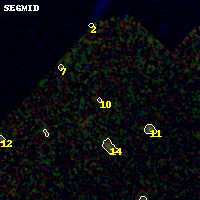 Black segments are analyzed here. Roll mouse over color images to view segments. Best viewed in a wide browser window (1200 pixels or more). Download SED & P(z) plots to view larger versions.