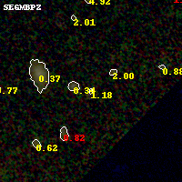 Black segments are analyzed here. Roll mouse over color images to view segments. Best viewed in a wide browser window (1200 pixels or more). Download SED & P(z) plots to view larger versions.
