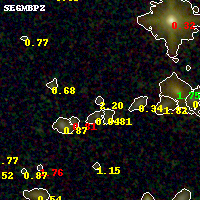 Black segments are analyzed here. Roll mouse over color images to view segments. Best viewed in a wide browser window (1200 pixels or more). Download SED & P(z) plots to view larger versions.