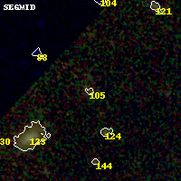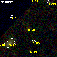 Black segments are analyzed here. Roll mouse over color images to view segments. Best viewed in a wide browser window (1200 pixels or more). Download SED & P(z) plots to view larger versions.