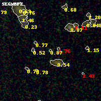 Black segments are analyzed here. Roll mouse over color images to view segments. Best viewed in a wide browser window (1200 pixels or more). Download SED & P(z) plots to view larger versions.