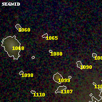 Black segments are analyzed here. Roll mouse over color images to view segments. Best viewed in a wide browser window (1200 pixels or more). Download SED & P(z) plots to view larger versions.