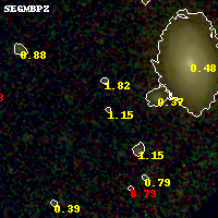 Black segments are analyzed here. Roll mouse over color images to view segments. Best viewed in a wide browser window (1200 pixels or more). Download SED & P(z) plots to view larger versions.