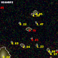 Black segments are analyzed here. Roll mouse over color images to view segments. Best viewed in a wide browser window (1200 pixels or more). Download SED & P(z) plots to view larger versions.