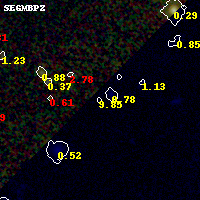 Black segments are analyzed here. Roll mouse over color images to view segments. Best viewed in a wide browser window (1200 pixels or more). Download SED & P(z) plots to view larger versions.