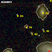 Black segments are analyzed here. Roll mouse over color images to view segments. Best viewed in a wide browser window (1200 pixels or more). Download SED & P(z) plots to view larger versions.
