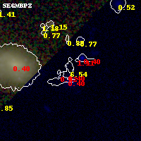 Black segments are analyzed here. Roll mouse over color images to view segments. Best viewed in a wide browser window (1200 pixels or more). Download SED & P(z) plots to view larger versions.