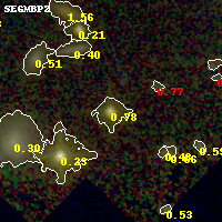 Black segments are analyzed here. Roll mouse over color images to view segments. Best viewed in a wide browser window (1200 pixels or more). Download SED & P(z) plots to view larger versions.