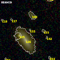 Black segments are analyzed here. Roll mouse over color images to view segments. Best viewed in a wide browser window (1200 pixels or more). Download SED & P(z) plots to view larger versions.